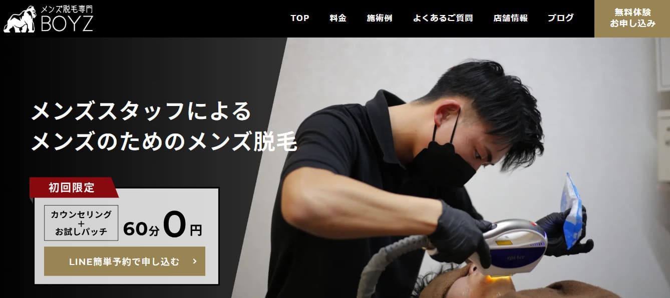 | メンズ脱毛専門 BOYZ 浜松高丘店 | 42,500円(7部位) | 8,500円(初回4,500円) |