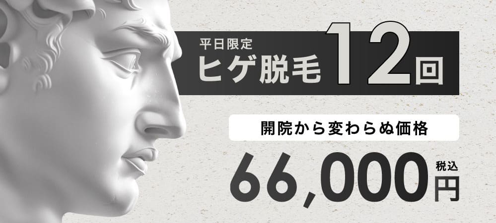 | 料金 | ■顔ヒゲ脱毛88,000円/5回■全身脱毛297,000円/5回(ヒゲ・VIO含む) |