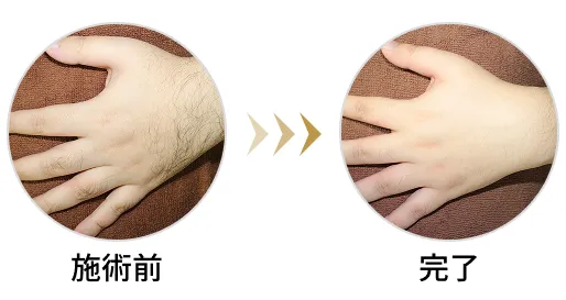 - 両手の甲・両手の指(第一関節込み)・両ひじ下の脱毛施術