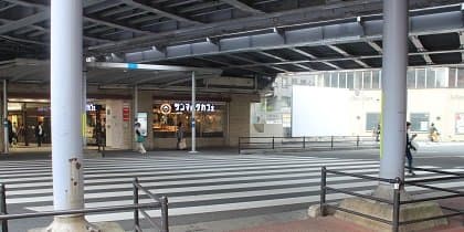 東口改札を出ていただき真っ直ぐ進んでいただくと、商業施設のc・oneが見えて参ります。C・oneを右手に見ながら進んでいただくと、直ぐにバスロータリーが見えて参りますので、そちらを右折してください。