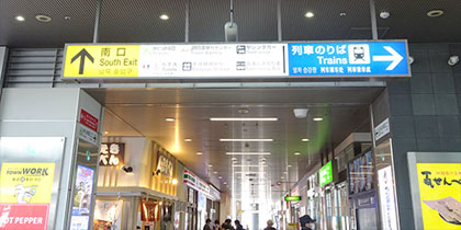 JR高松駅改札を出ていただき、南口を出て中央道り(国道30号)を南へ10分(750m)ほど歩きます。