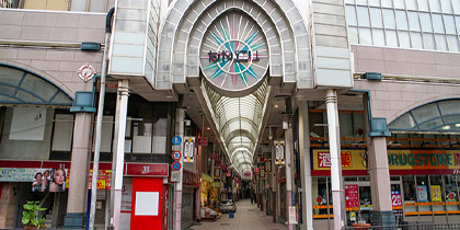 なや通り商店街の入口が見えましたら商店街に入ります。