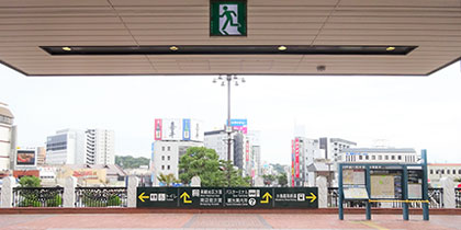 JR倉敷駅からは南口を出て1Fに降り、倉敷駅前交差点に直進してください。