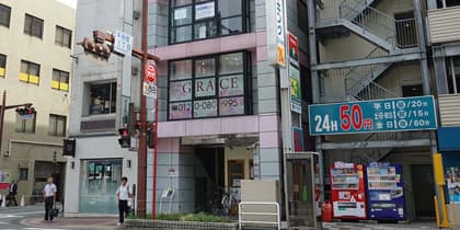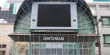 1分ほど歩くと、松山市商店街の銀天街がございます。銀店街の正面から左に向かって進みますと、東進衛星予備校が入っているビルがございますので、そちらから右折していただきます。