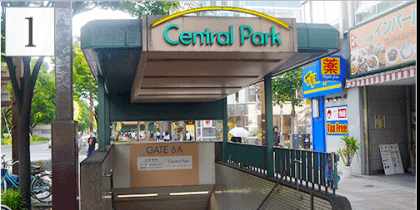 改札を出てそのまま地下商業施設のセントラルパークへお入りください。6A出口が当サロンの最寄り出口でございます。6A出口を出て、セントラルパーク6B出口との間の側道を右折します。