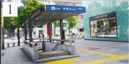 栄駅3番出口を出ますと右手にテレビ塔、左手にルイ・ヴィトンさんが見えます。そのまま直進して横断歩道を2つ渡り、吉野家さんの先の横断歩道を左折した先の右手に、当サロンがございます。