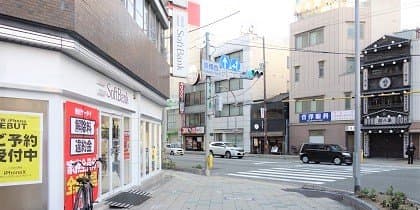京橋西の交差点がございますので、こちらの角にあるソフトバンクを左へ曲がり、直進して下さい。