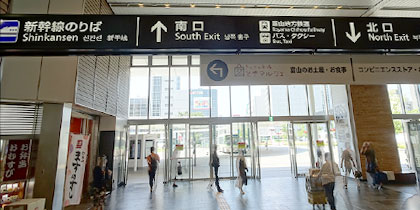 富山駅改札を出ていただき、JR富山駅の南口をご利用くださいませ。JR富山駅の南口を出ていただくと目の前にバスロータリーがございますので、駅ビルMAROOT方面(南口を出て右手方面)に向かってください。